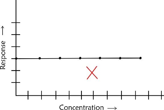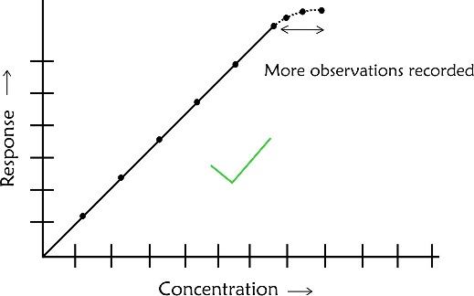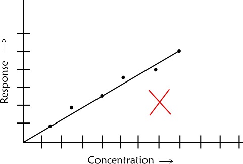 - If a calibration plot is a horizontal straight line it should be rejected straightaway as it would mean that the technique is not responding to changes in concentration of the sample